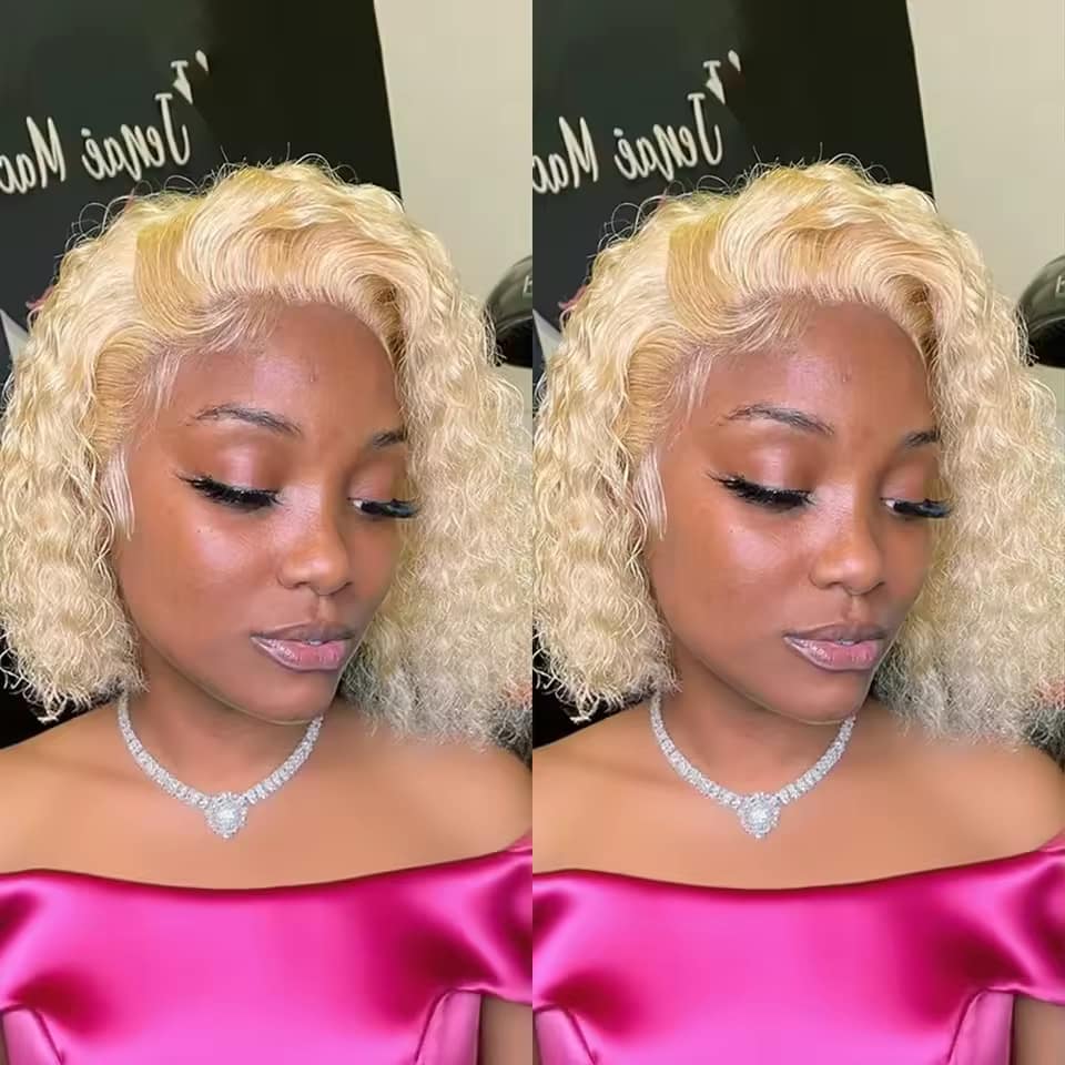 613 Honey Blonde HD Lace Frontal Wig Human Hair Curly 10inch Deep Wave Brazilian bob Colored Lace Front Wigs For Women